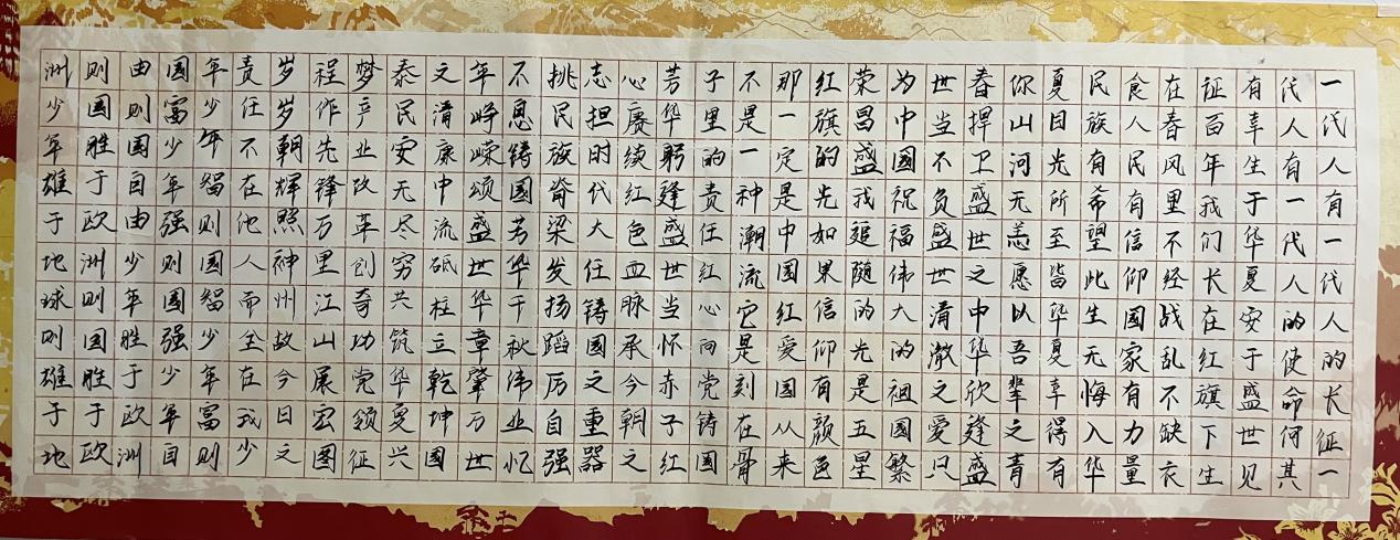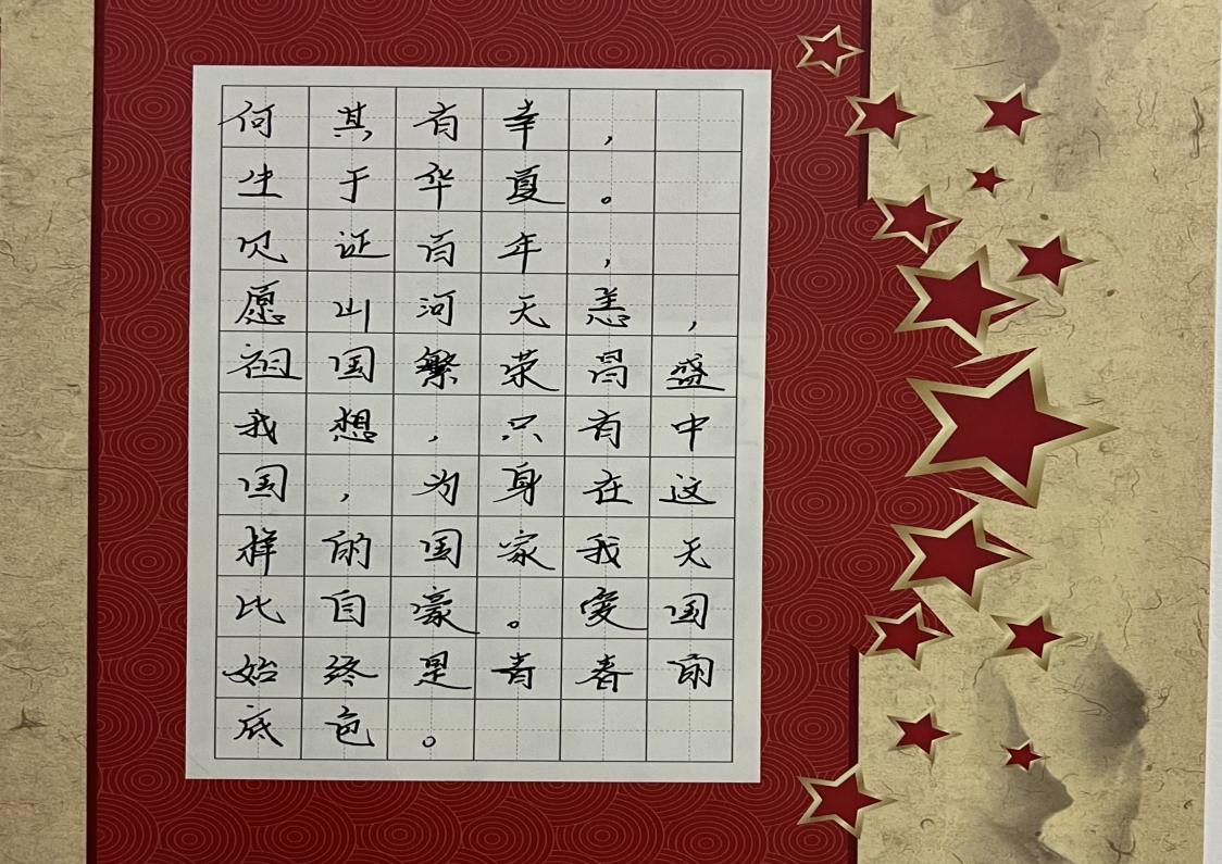 比赛现场,同学们热情洋溢地在纸上执笔挥洒,或表达对祖国富强美好的祝愿,或抒发爱国理想情怀,或歌颂党的恩情。挥毫书华章,翰墨润心田,大家通过书法比赛,共沐红色文化,字里行间一笔一划皆是对党和祖国的热爱之情。
