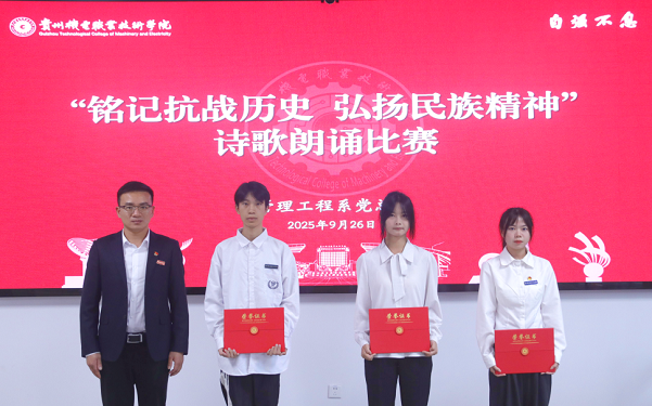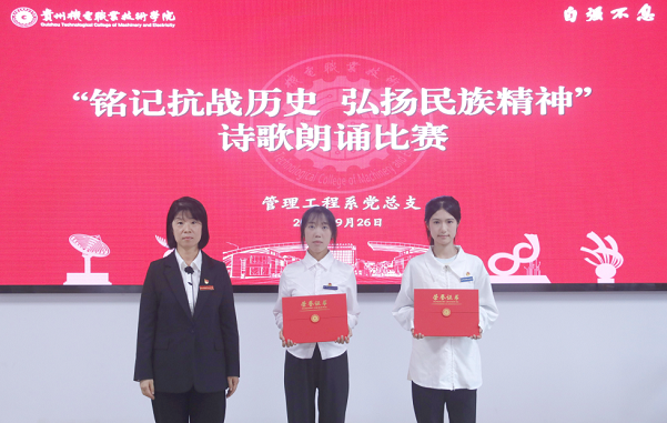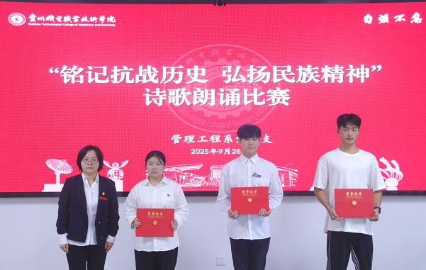 为纪念中国人民抗日战争暨世界反法西斯战争胜利80周年,大力弘扬伟大抗战精神,引导学生铭记历史、传承红色基因,9月26日,管理工程系党总支在图书馆306室举办了“铭记抗战历史,弘扬民族精神”主题诗歌朗诵比赛。
