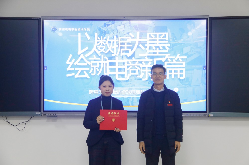 管理工程系辅导员李琴老师为获成长赛道三等奖的选手颁奖