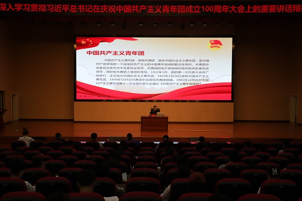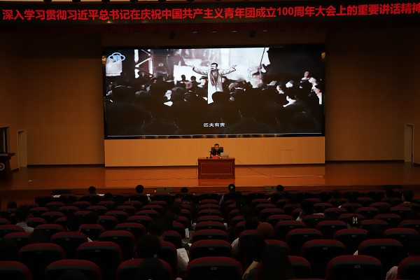 为深入学习贯彻习近平总书记在庆祝中国共产主义青年团成立100周年大会上的重要讲话精神,进一步回顾共青团的光辉历程,引领我院广大青年学生提高政治站位,牢记青春寄语,2022年6月,学院团委在严格做好疫情防控措施前提下,在学院报告厅开展“深入学习贯彻习近平总书记在庆祝中国共产主义青年团成立100周年大会上的重要讲话精神”宣讲会。
