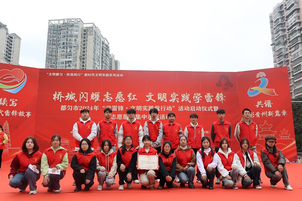 学院团委积极响应共青团都匀市委、都匀市新时代文明实践中心等部门号召,参加都匀市2024年“学雷锋·文明实践我行动”活动启动仪式暨志愿服务集中示范活动。