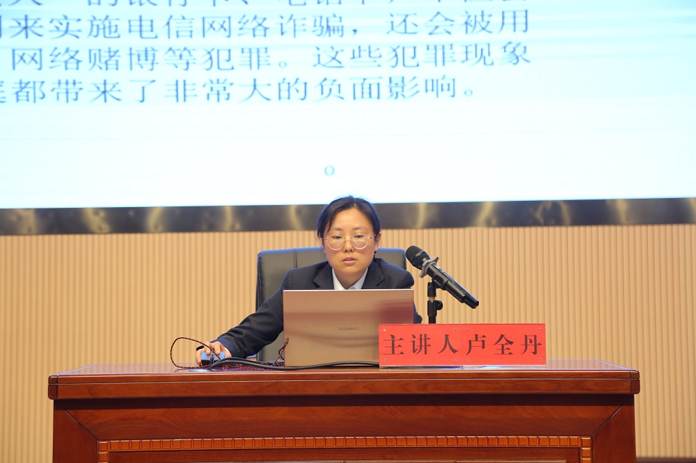讲座围绕“防范电信网络诈骗”和“网络贷款”两个专题开展,对常见电信网络诈骗及网贷陷阱的特征、危害、识别方法和防范措施等问题进行深入剖析和阐述,并对学生可能因为出租、出借“两卡”触犯“帮信罪”进行了警示教育。