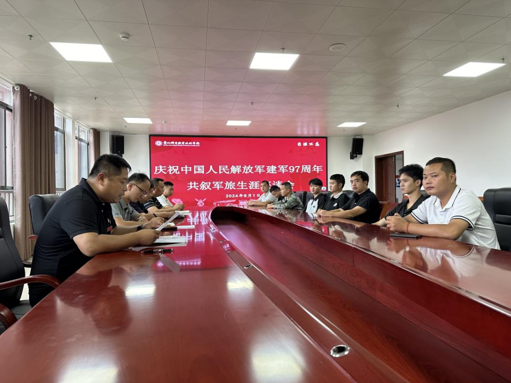 为深入学习贯彻习近平总书记关于退役军人工作的重要指示精神,增强退役军人的爱国情怀与责任担当,2024年8月1日,学院召开庆祝中国人民解放军建军97周年共叙军旅生涯座谈会。党委委员、副院长曾旭,保卫科科长李建涛,学生工作部副部长吕洪,学院退休退役军人李晓贞同志及在职退役军人参加座谈会,保卫科科长李建涛主持会议。