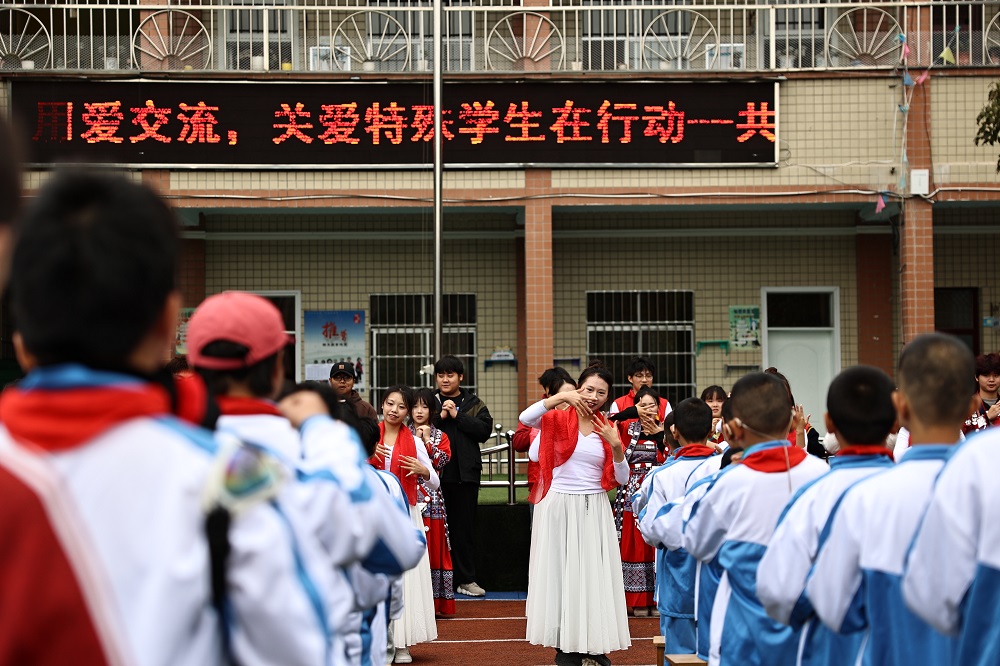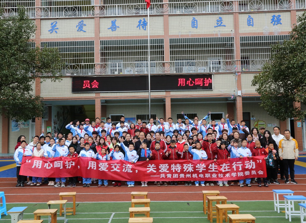 为弘扬社会正能量,传递温暖与关爱,增强学院青年学生的社会责任感,11月20日下午,团委组织50余名师生走进都匀市特殊教育学校开展“用心呵护,用爱交流,关爱特殊学生在行动”志愿服务活动,学院党委委员、副院长曾旭,团委书记尹浩参加本次活动。