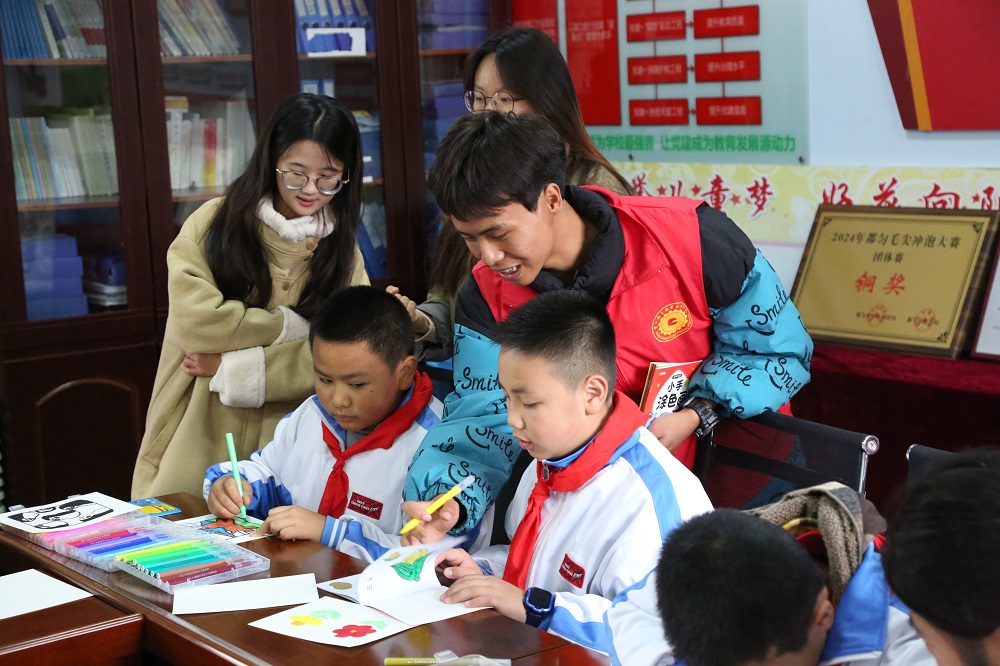 表演结束后,志愿者们为孩子们送上了精心准备的礼物,随后,志愿者把孩子们带进教室一起进行绘画创作。在志愿者的悉心指导下,孩子们依次完成了自己的画作,脸上纷纷流露出自豪与喜悦之情。这些作品不仅展现了孩子们的创造力和想象力,更成为了他们与志愿者之间友谊的见证。