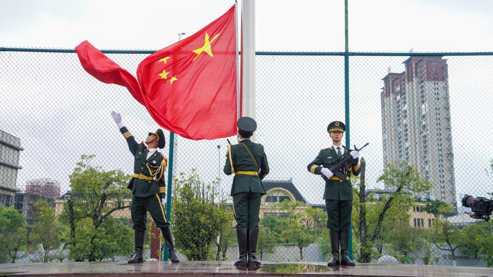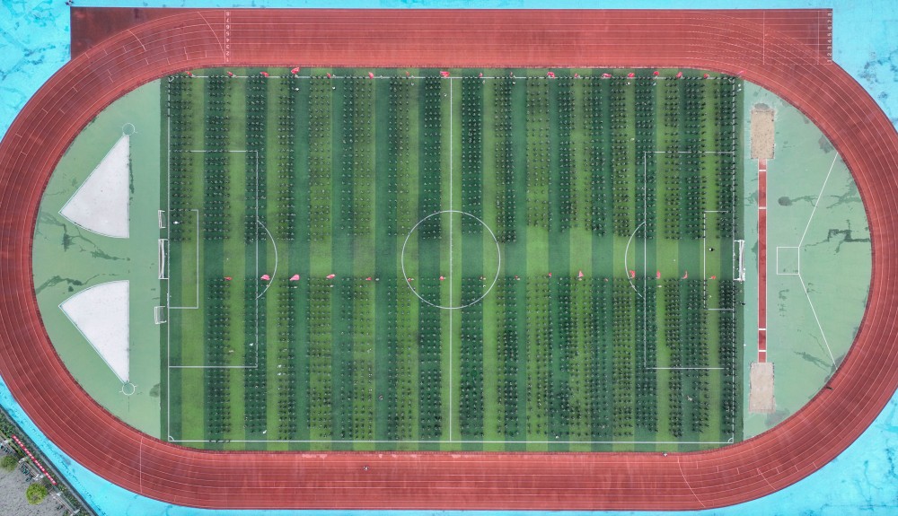 大会在庄严的国歌声中正式拉开帷幕。五星红旗冉冉升起,全场新生昂首挺胸,歌声嘹亮,青春的热血值瞬间拉满!