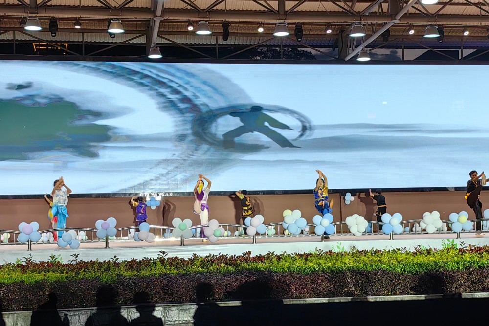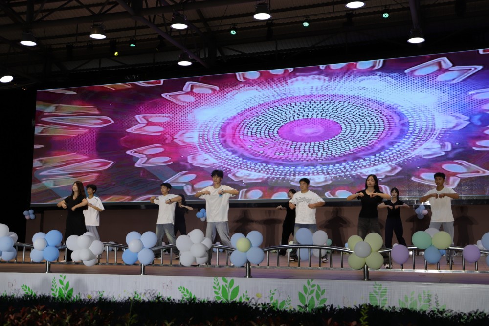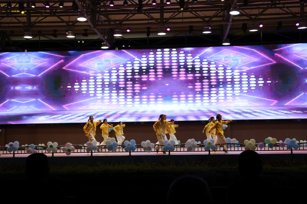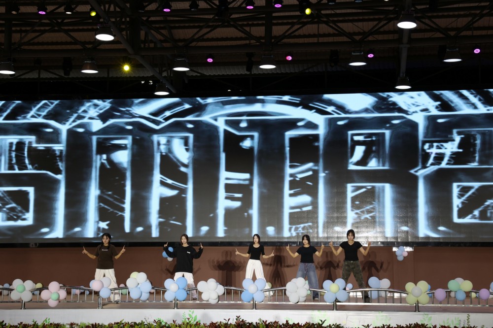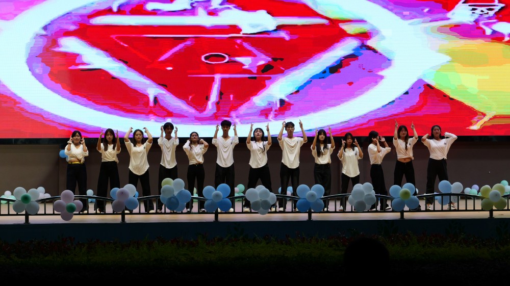 随着《蓝莲花》的激昂旋律响起,晚会正式拉开帷幕。16 个节目轮番登场,将青春活力演绎得淋漓尽致:歌声悠扬,从《推开世界的门》的温柔倾诉,到《恰似你的温柔》的治愈哼唱,每首歌都引发全场合唱;舞姿灵动,民族舞裙摆飞扬尽显韵味,旗袍走秀、现代舞、爵士舞与啦啦操社团表演的hiphop 节目,用利落节拍点燃激情;以茶为媒,《春芽启新程》带我们感受春芽的清新与新程的希望;刚柔并济,武术协会的拳脚生风、情景朗诵《我有一束光》的热血感动,不断将现场氛围推向高潮。