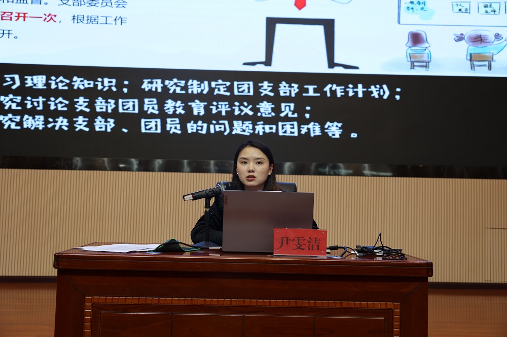 尹雯洁副书记以“学思践悟促提升 知行合一落实处”为主题,围绕新团员发展、“三会两制一课”、团费缴纳管理、“智慧团建”系统使用、团组织关系转接、主题团日活动等基础团务知识进行专题培训。