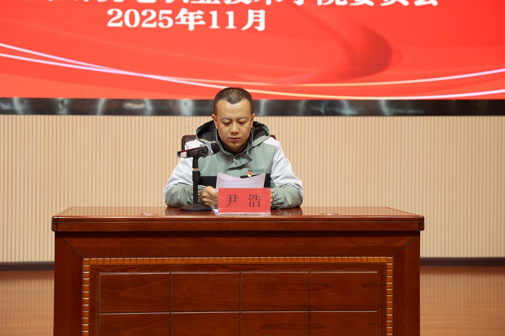 团委书记尹浩领学习近平总书记在党的二十届四中全会上的重要讲话和全会精神,并结合学院青年工作实际,阐述了全会精神对学校团学工作的指导意义,引导团学干部深刻把握新时代青年工作的职责使命,将个人成长融入国家发展大局。