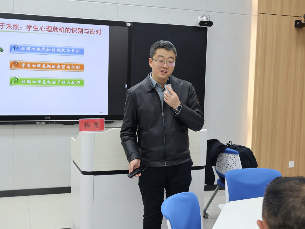 座谈后,程刚教授对心理工作队伍开展了心理危机识别与干预能力提升的专题讲座。讲座中,程刚教授首先深入剖析了当前校园心理危机的现状与普遍规律,接着他详细讲解了如何通过日常观察、谈心谈话、信息筛查等多维度途径,敏锐、精准地捕捉潜在危机的信号,最后程刚教授讲解了如何应对学生心理问题与心理危机。程刚教授讲座内容翔实、案例生动,有效增强了我院心理工作队伍对心理危机的敏感度、辨识力和干预处置信心。