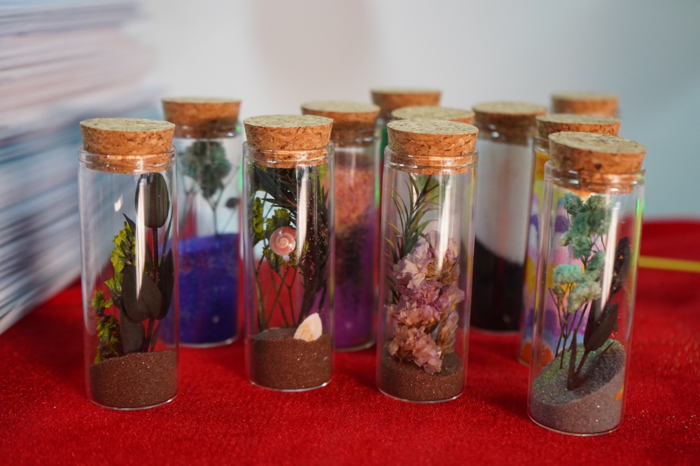 在这里,每一种情绪都被赋予了独特的色彩。同学们将喜怒哀乐幻化成斑斓的彩沙,注入透明的瓶中,制作出独属于自己的“心情晴雨瓶”。这不仅是件艺术品,更是一次情绪的温柔安放。