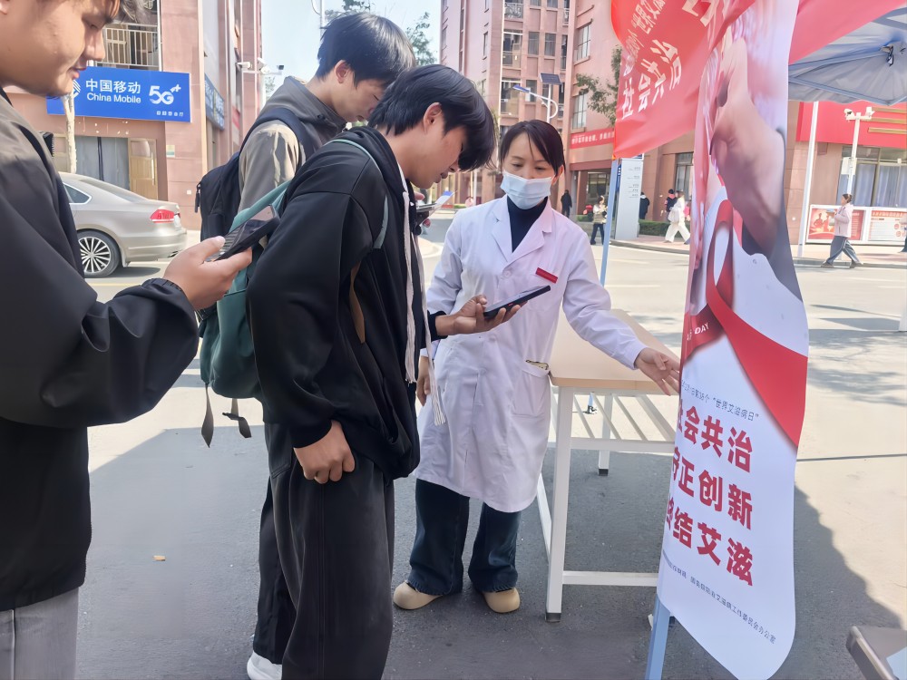 2025年12月1日是第38个“世界艾滋病日”。为提高青年学生对艾滋病的科学认知与自我防护能力,营造健康安全的校园环境,我院以“社会共治、守正创新、终结艾滋”为主题,组织开展了艾滋病防治宣传系列活动。本次活动由学院后勤管理科牵头,联合院团委、院工会及都匀市疾控中心防艾科共同举办。