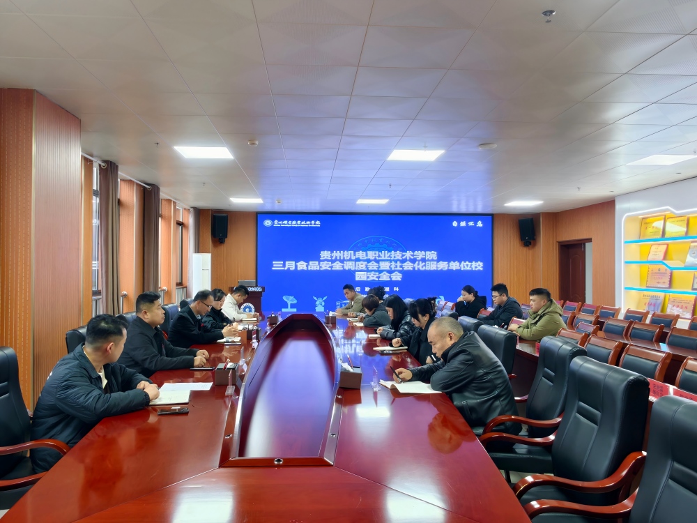 为进一步强化校园安全管理,压实主体责任,3月25日,贵州机电职业技术学院组织召开三月食品安全调度会暨社会化服务单位校园安全会。学院党委委员、副院长曾旭出席会议,后勤管理科相关负责人及全体社会化服务单位负责人参加会议。