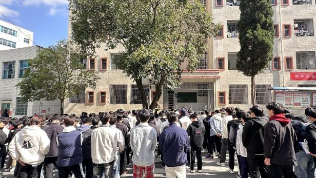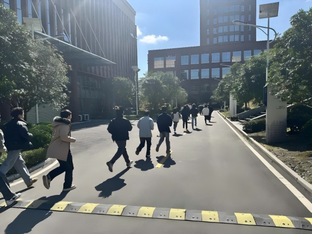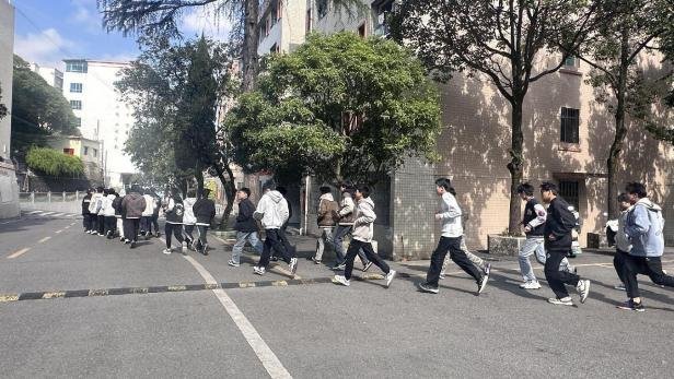 11时15分,警报声响起,演练正式启动。各班级师生迅速响应,任课教师切断电源、打开通道,引导学生弯腰低姿、有序列队,沿预定路线快速撤离。两校区严格遵循“不推挤、不喧哗”原则,重点管控楼梯口等关键区域,同德楼、同向楼等场所师生分别疏散至指定集合点。到达后,班干与教师快速清点人数、逐级汇报,全程紧张有序。