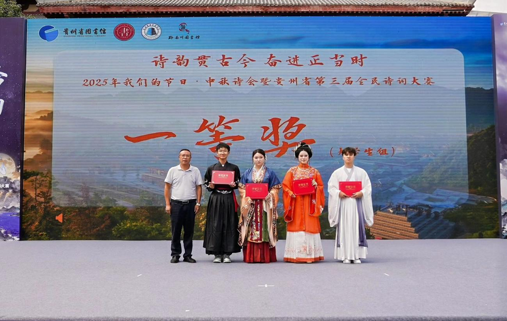 10月8日,由贵州省图书馆、贵州省图书馆学会、贵州省高等学校图书馆工作指导委员会联合中共黔南州委宣传部、黔南州文化广电和旅游局(州体育局)等单位共同举办的2025年“我们的节日·中秋诗会”暨贵州省第三届全民诗词大赛圆满落幕。