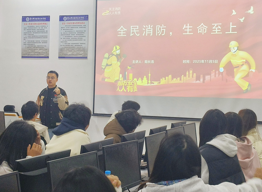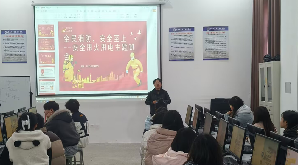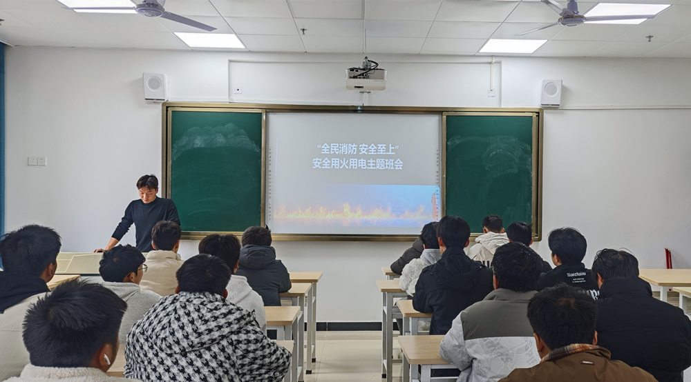 在第十一周,各系辅导员利用班会课,加强了学生公寓防火防电安全知识专题教育。教导学生在寝室禁止乱搭乱接电线插板,禁止使用大功率电器,禁止在寝室使用明火,禁止在寝室吸烟,禁止将电动自行车、电动滑板车以及相关设备电池带入学生公寓停放或充电,以免引发寝室火灾事故。