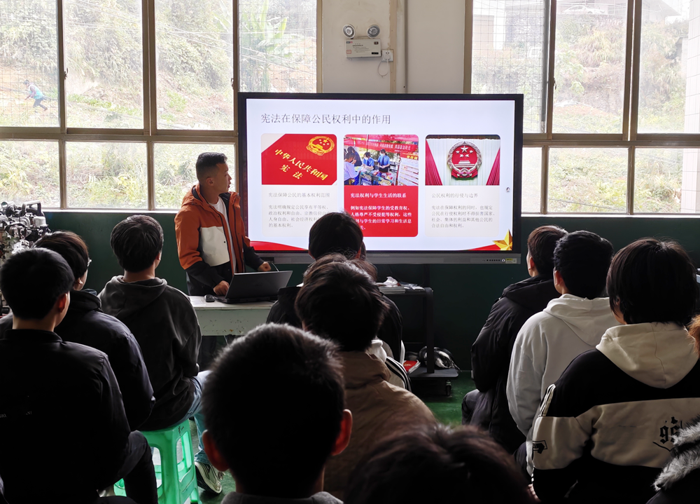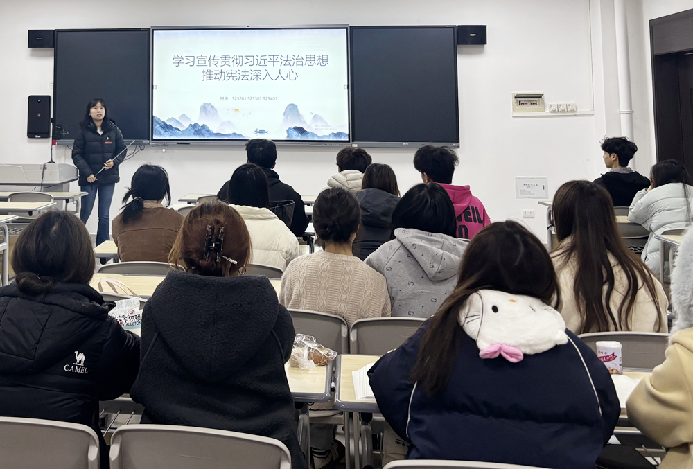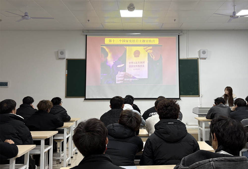 在第十六周,各系辅导员开展了“学习宣传贯彻习近平法治思想,推动宪法深入人心”主题班会,结合工作生活中的案例,给学生讲解了宪法在保障公民权利及维护国家和社会基本制度方面的作用。同时教导学生对宪法要有敬畏之心,养成遵法守法的好习惯,让践行宪法精神成为行动自觉。
