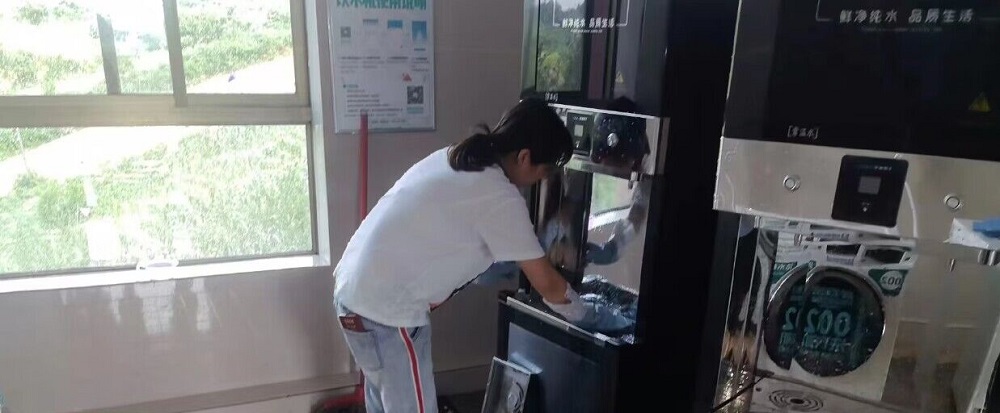 2024年暑假期间,为保障校园饮用水质量,后勤管理科组织两个校区校园直饮水厂家进行水质抽样检测,并对机器进行除垢清洗、更换滤芯。