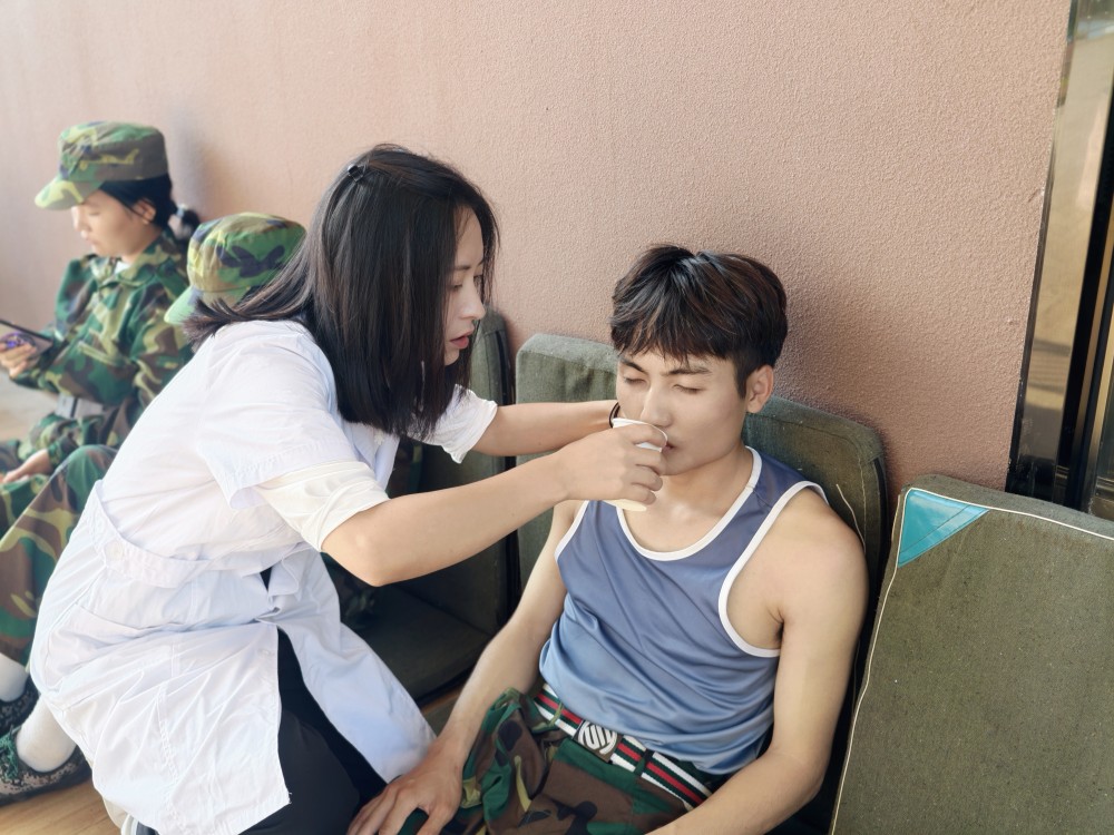 军训期间,体能消耗大,户外活动时间长,身体易突发各类状况。学院后勤管理科医务室直面挑战,制定了详尽的医疗保障方案。每日军训时段,医务室均在校园内的两个主要训练场地设立固定医疗服务保障驻点,派驻校医全程值守,确保一旦有新生出现中暑、擦伤、扭伤或其他身体不适情况,能够第一时间得到专业的现场处置,实现了医疗服务与训练场地的“零距离”对接。